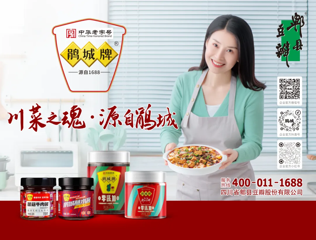 随着消费市场全面升级,食品行业迎来了高质量发展的新篇章。3月26日-3月28日,第114届全国糖酒商品交易会于成都中国西部国际博览城开幕;紧随其后,3月28日-3月31日,良之隆·第十四届中国食材电商节也在武汉国际博览中心举办。作为行业龙头与“酱香风味引领者”,鹃城牌郫县豆瓣紧扣“创新、品质、体验”三大关键词,以全新升级的品牌展位与全系列新产品,在两场行业盛会上惊艳亮相,以一抹浓郁酱香,向世界展示了百年品牌的深厚底蕴与蓬勃活力。随着消费市场全面升级,食品行业迎来了高质量发展的新篇章。3月26日-3月28日,第114届全国糖酒商品交易会于成都中国西部国际博览城开幕;紧随其后,3月28日-3月31日,良之隆·第十四届中国食材电商节也在武汉国际博览中心举办。作为行业龙头与“酱香风味引领者”,鹃城牌郫县豆瓣紧扣“创新、品质、体验”三大关键词,以全新升级的品牌展位与全系列新产品,在两场行业盛会上惊艳亮相,以一抹浓郁酱香,向世界展示了百年品牌的深厚底蕴与蓬勃活力。