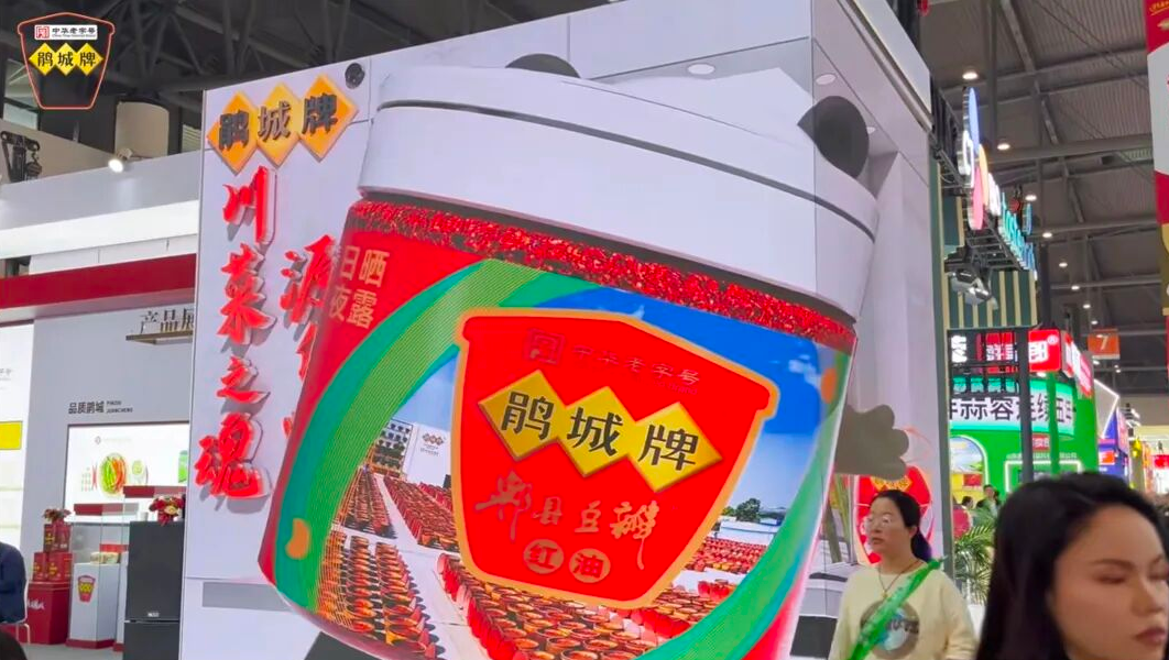 如果说展位设计是品牌实力的外在表达,那么现场震撼的裸眼3D技术则是吸引眼球的“杀手锏”。在糖酒会与良之隆展会现场,鹃城牌郫县豆瓣巧妙运用前沿的裸眼3D大屏技术,将传统的郫县豆瓣与现代视觉科技完美融合。画面中,郫都地标望丛祠、憨态可掬的熊猫和鹃城的产品仿佛跃出屏幕,这一极具冲击力的视觉呈现,不仅生动诠释了鹃城牌百年传承的匠心精神,更让每一位经过的观众身临其境,直观感受到品牌所蕴含的深厚生命力,成为展馆内当之无愧的“打卡点”。